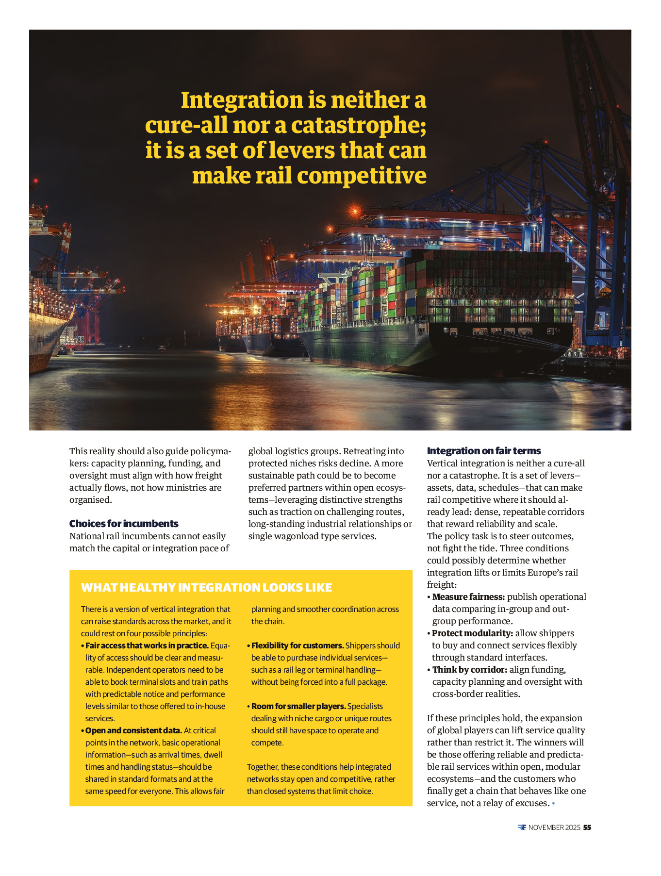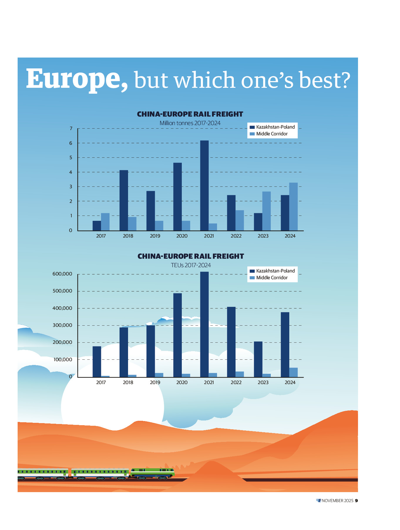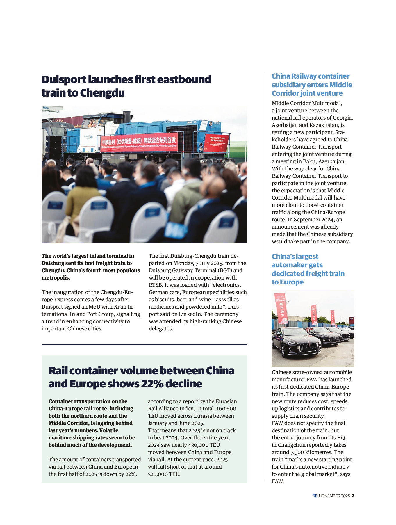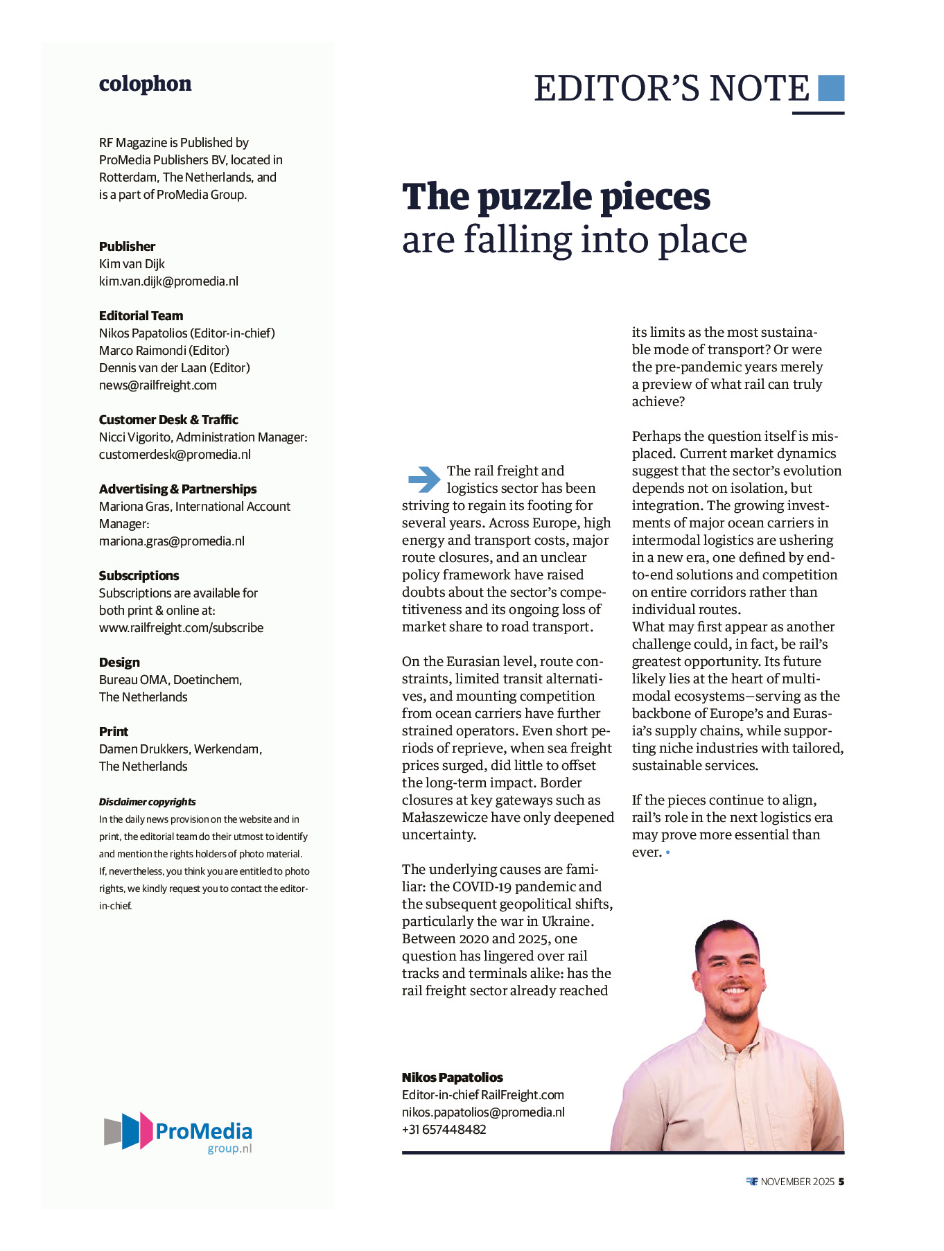 We are excited that you are viewing the first edition of the RF Magazine! With this new print and digital editorial product, the RailFreight.com team aims to draw your attention to valuable analyses, in-depth interviews, and data tracking the most important trends in the rail freight and broader transport sectors. Have a read and stay up to date for the upcoming editions…which will be only available to our subscribers.