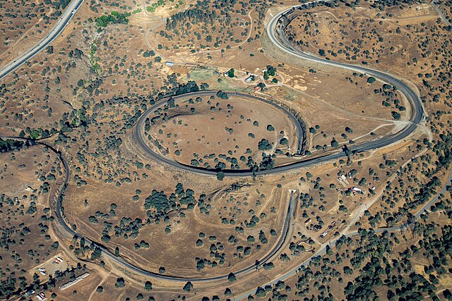 The 19th-century Tehachapi loop, where trains can cross themselves